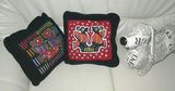 以前しあげてあったモラを、クッションに縫い付けました。